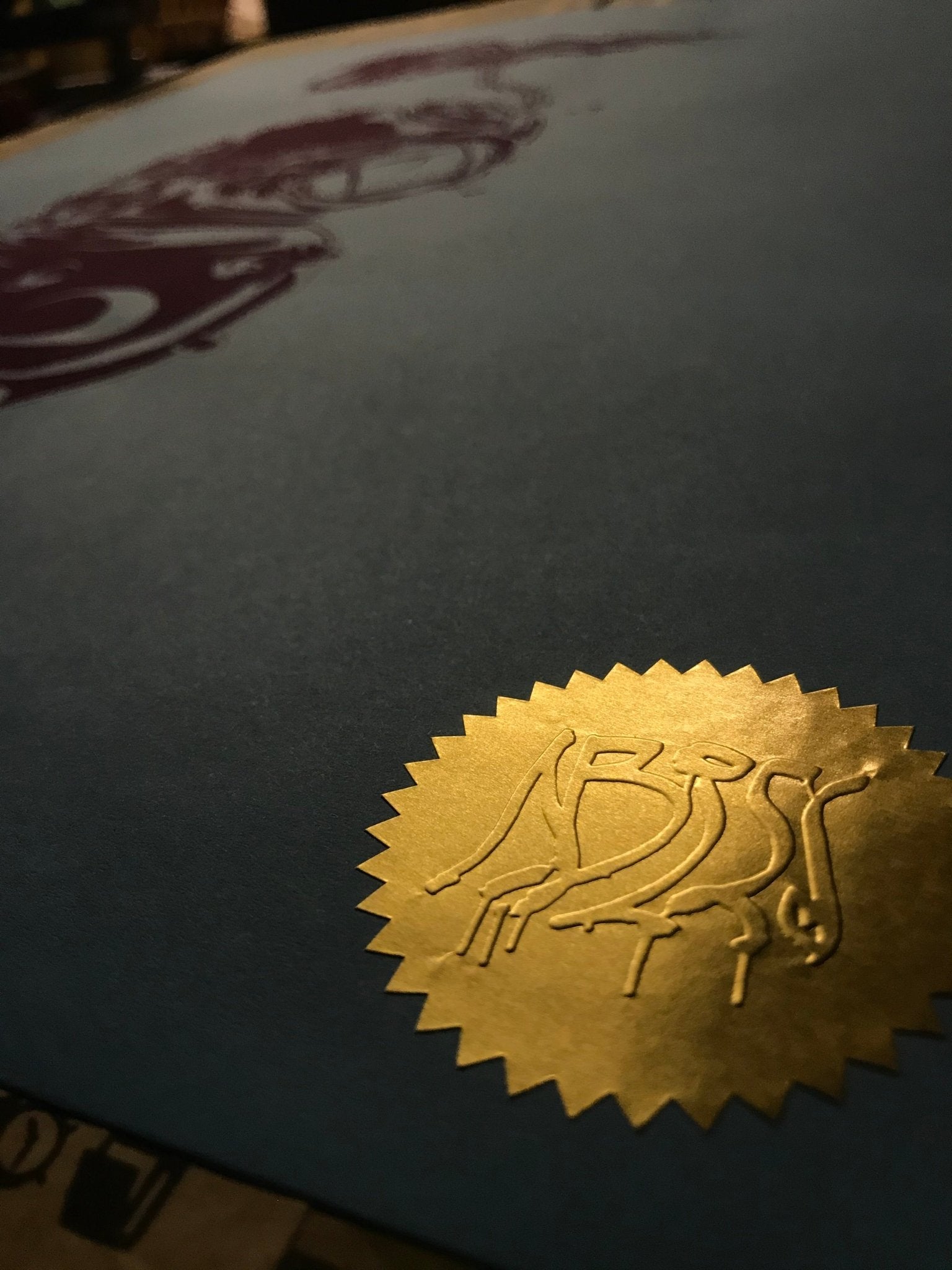 Embossed golden Abiss logo non-removable sticker for authenticity. Serigraphs are numbered and signed on the back of the print in the lower left corner.